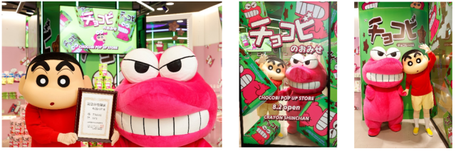 由小新最喜歡的餅乾上印有的可愛模樣也經常能從實體店面看見身影,官方目前為該角色制定一系列的紀念快閃活動,讓這位吉祥物更具代表性。