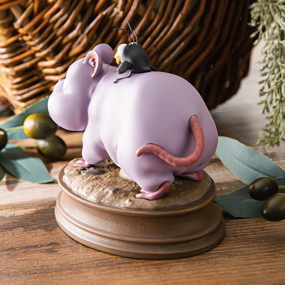 以劇中被變身為老鼠的坊寶寶小老鼠(坊ネズミ)與湯婆婆的隨從變身的小烏鴉(蒼蠅),和小千一同前跋涉往錢婆婆住所時,不願意依靠小千而終於靠自己小腳走路的一幕立體化,令人印象深刻!巨嬰小老鼠肥胖胖的身型加上帶有一點高傲與防備的表情,超級可愛~小烏鴉也以鬆一口氣的閃亮大眼停在背上從各角度欣賞都會被萌到。整體尺寸約高 70 mm、寬 100 mm,底座還原泥土地的造型,完整再現劇中姿態~將於 2021 年 08 月 07 日起在日本橡子共和國網路商店 donguri-sora 開放預購。