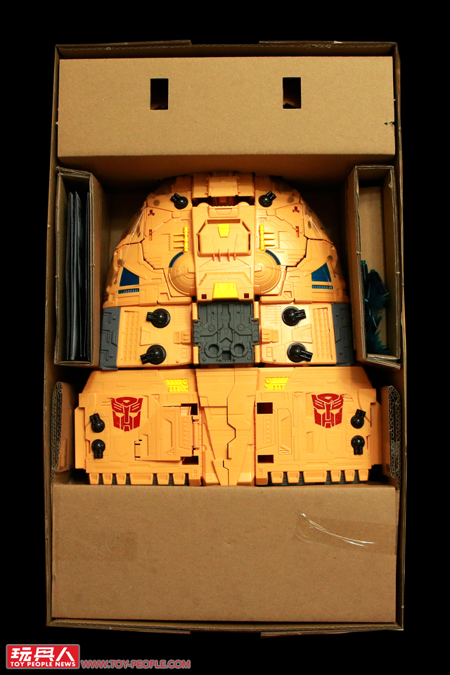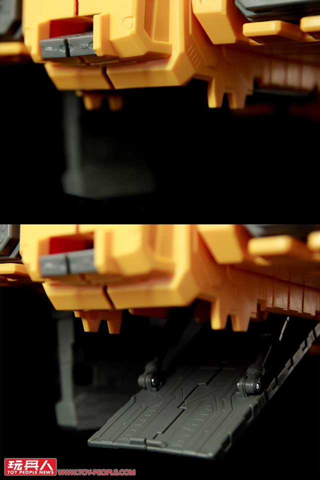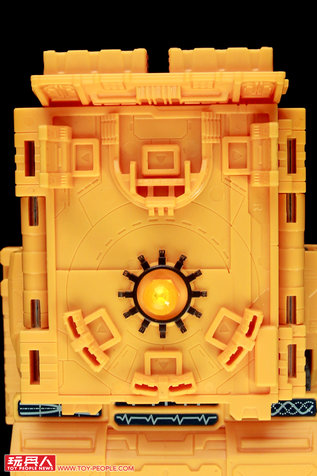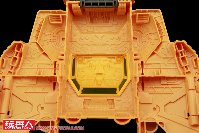 ▼「主機」(Mainframe),最初登場於1990年所發售的行動戰士(Action Master)系列,本次的王國版則是將其原本的紅藍配色更改為與方舟一體的橘黃色,並增添了元祖版未搭載的變形基構。