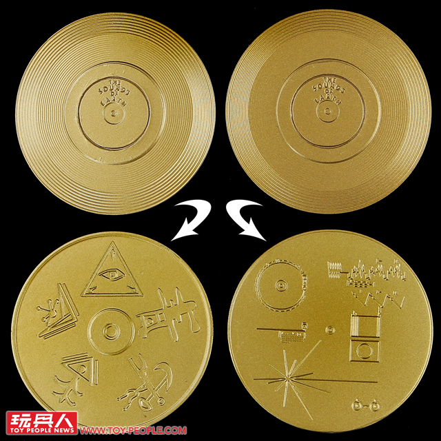 ▼收錄了劇中出現過的兩張碟片,可以注意到上方的刻線各有不同。附帶一提,這個碟片的造型並非單純原創,乃是取材自現實中NASA在1977年由兩台航海家探測器發射至太空的「航海家黃金唱片」(Voyager Golden Records)。