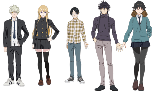 先前公布的聲優名單為 PV 出現的主要角色群,包含;矢口八虎( CV:峯田大夢 ) 、鮎川龍二( CV:花守ゆみり ) 、高橋世田介( CV:山下大輝 )、橋田 悠 ( CV:河西健吾 ) 與桑名マキ ( CV:宮本侑芽 ) 。( 介紹以下圖由左至右順序 )
