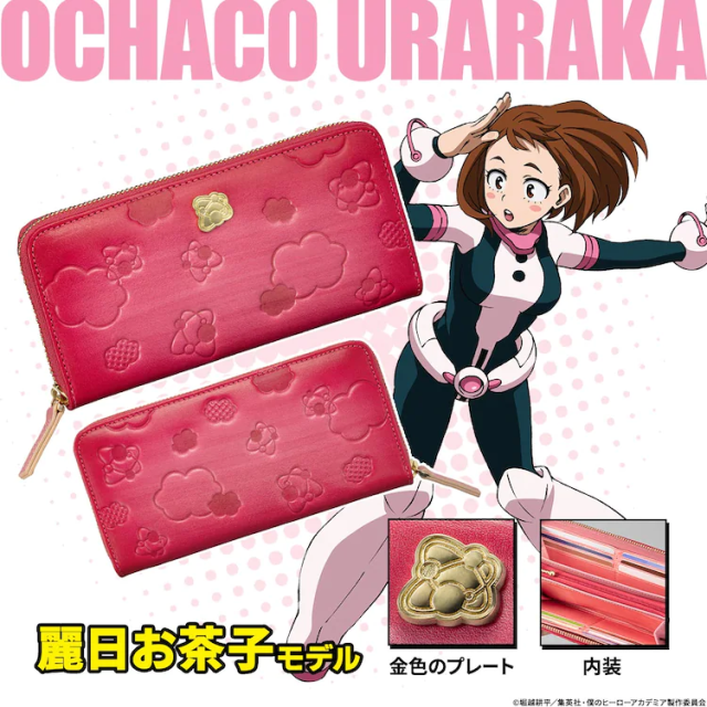 另外,「皮製錢包」是用一種特殊皮革製成的,外表則是以各自角色的個性為形象去設計的造型,皮包中央的金色圖示是各自的代表圖樣,並且連顏色也都是以各個角色的代表色去設計,出久是綠色、爆豪是橘色、御茶子是粉色、轟則是藍色,不僅表現出了各角色的獨特性格,也展現出了本作品的獨特世界觀。