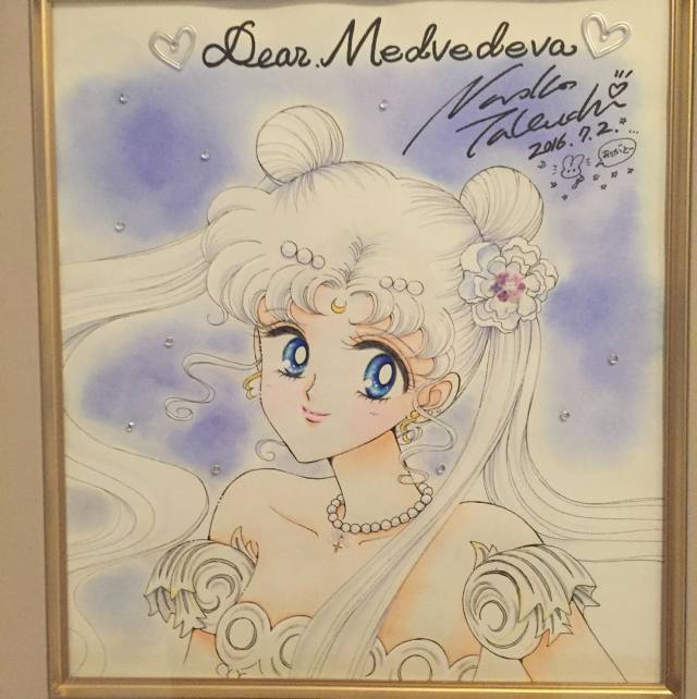 值得稱羨的事,該選手不僅贏得優秀成績與同好粉絲的歡迎,在先前於日本巡迴演出後,也獲得了《美少女戰士》作者武內直子老師親自贈送的親筆簽名畫,這讓身為忠實粉絲的梅德維戴娃也藏不住內心的喜悅。
