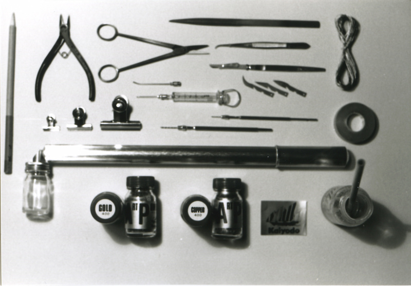 由海洋堂開發的模型工具,包含斜口鉗、筆刀、鑷子、手鑽...等。當時沒有「模型專用工具」這種概念,大部分的工具都是從工業、醫療用具改造而來。