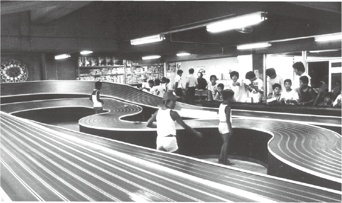 後續此類賽車場更因出現大人聚賭被學校與家長會視為不良場所,加上動力模型車熱潮快速衰退,種種因素導致海洋堂出現大量虧損,四處以債養債、惡性循環。好在後來靠著設置 1970 年代最新朝的大型遊戲機台吸引孩子們光顧,海洋堂這才撿回一命。