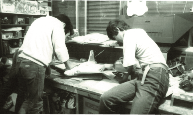後排右邊第二位便是當時年輕的宮脇修一專務,前排最左邊的則是任職海洋堂的造型師 BOME。