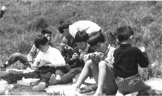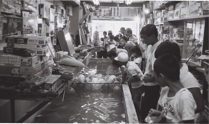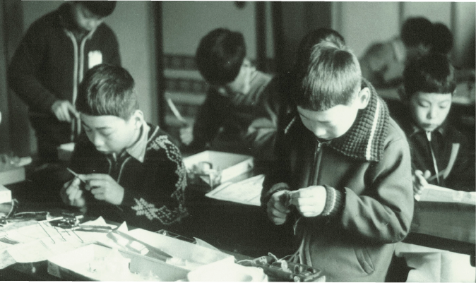當時海洋堂開設「模型教室」的情景,除了教導孩童製作模型,有時也會一起到河邊玩耍。