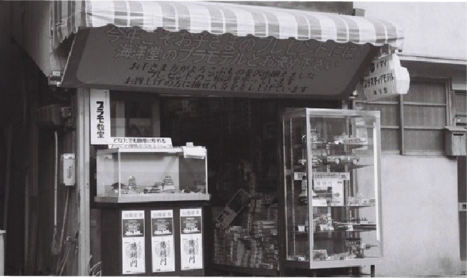 海洋堂開幕初期的店舖模樣,店內堆滿了組裝模型,空間十分狹窄。