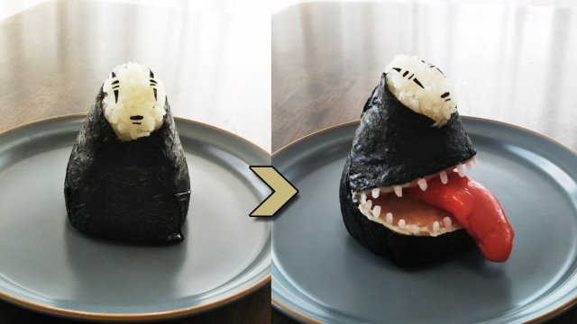 推主相當懂得善用各種食材,每一顆飯糰都是只用食材製成的,而且拍照後也都被推主美味地享用了。雖然不浪費食物是美德,不過果然還是會讓人覺得有點小可惜呀。