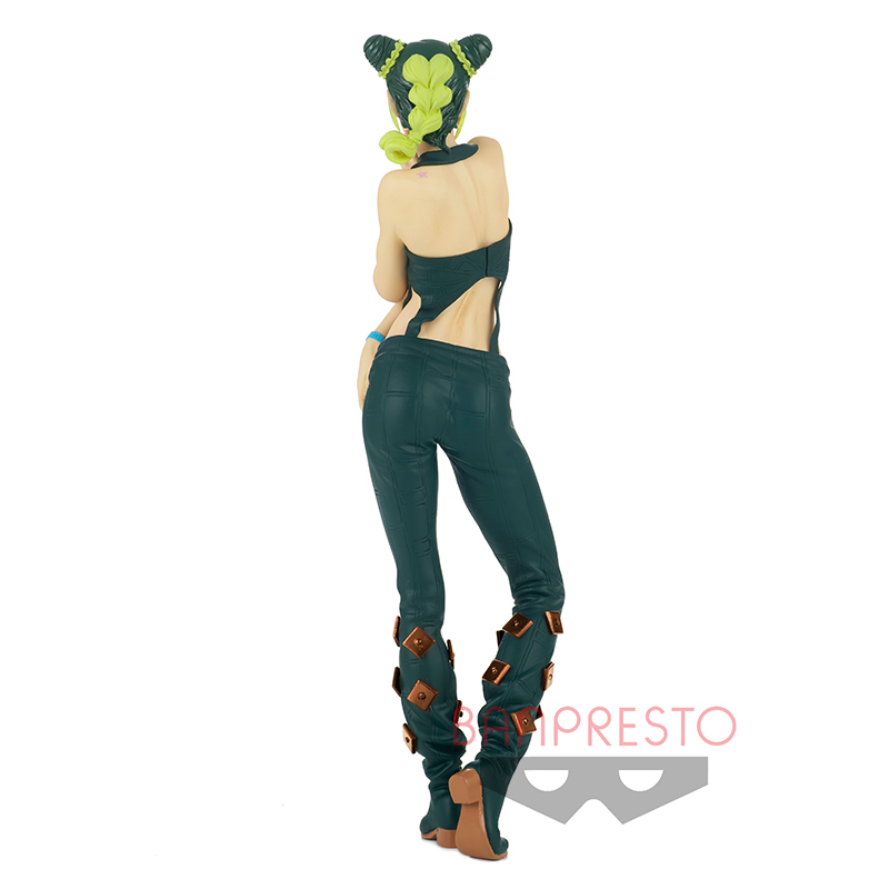 維持 Grandista 系列一貫的魄力尺寸,「Grandista 空條徐倫」景品尺寸高約 26 公分,將系列作品唯一女主角徐倫以平價的景品展現~還原特色的雙色髮、綠色眼唇妝容;帥氣的JOJO立姿勢搭配性感的露肚服裝,讓整體充滿強悍叛逆中又帶有一絲撫媚的氛圍~除了腹部、背部的肌肉線條,細節如蝴蝶刺青、服裝皺褶、金屬配件等造型也完整重現!