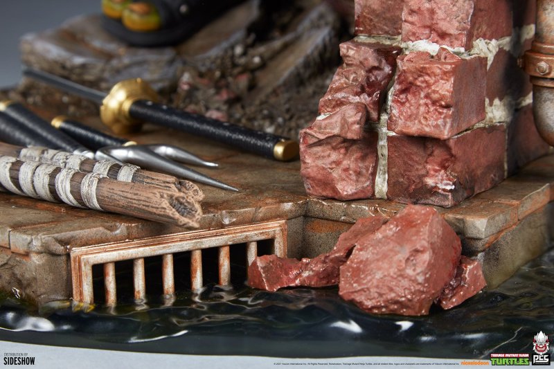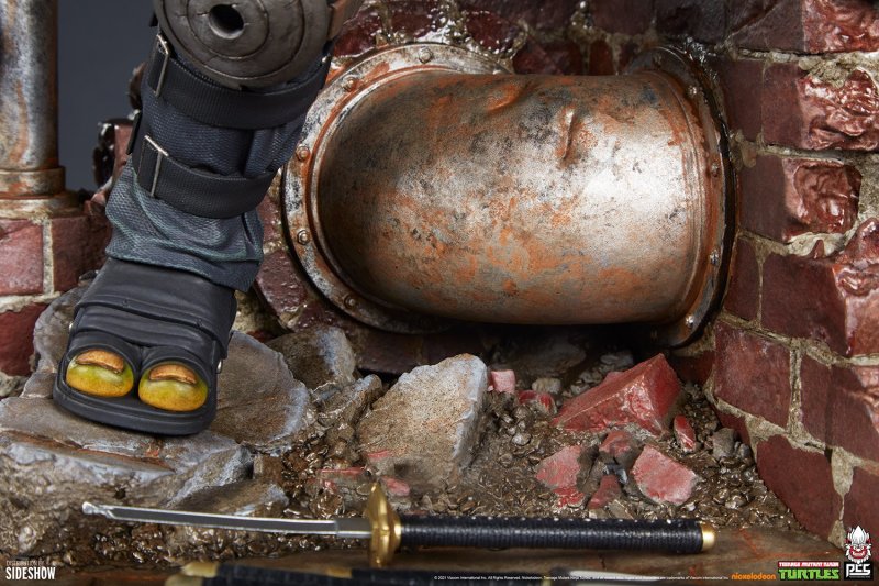本作高約 52 公分,是以僅存的忍者龜-米開朗基羅(Michelangelo)在下水道追捕敵人的情境為題設計,再現了那套深藍色潛行裝束、深褐色護甲、裝備腰帶的細節,除了手持拉斐爾的三叉、多納太羅的長棍之外,背上以粗繩綁起來的是另一支長棍與李奧納多擅長使用的日本刀,腰際還有他曾經愛用的武器雙節棍,搭配上咬牙的兇狠神情,完全展現出《忍者龜:最後的浪人》中決心復仇、看起來十分孤單痛苦的米開朗基羅身影。