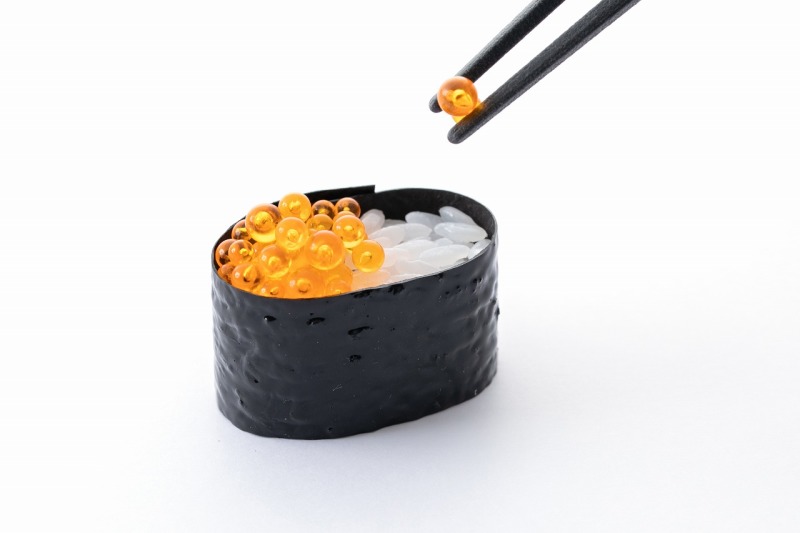 由日本模型製造商秋東精工(SYUTO)所推出的「壽司模型」(寿司プラモ)系列,繼先前話題性的「鮪魚/鮭魚壽司」後,再度推出人氣第三彈「鮭魚卵軍艦壽司( Ver.いくら)」1/1 比例組裝模型!參考售價為一貫 1,540 日圓,除了有 364 粒的醋飯零件要一粒粒黏,還有 64 顆大小不一的鮭魚卵,超擬真還原壽司造型!