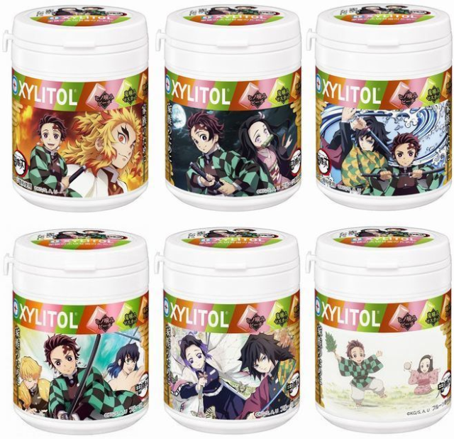另外與旗下口香糖產品「XYLITON」,也推出了六種合作罐裝,口香糖更製作成三種顏色 : 粉紅色、草綠色與橘色,上面更會附上各人物名字與代表性詞彙,讓人意想不到從罐中拿出來的會是什麼 XD。