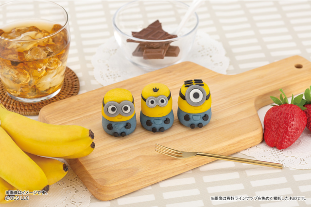 繼去年夏天合作後,「史都華」、「凱文」、「鮑勃」人氣三人組再次與大家見面,三位可以食用的和菓子非常精緻,展現出搞怪的史都華個性、小隊長凱文姿態、鮑勃的純真小可愛。