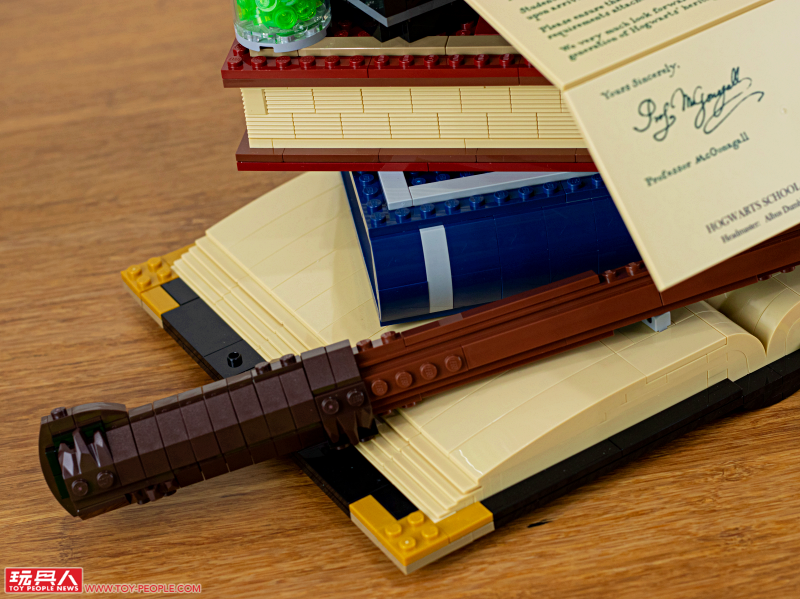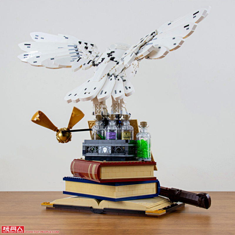 這次主打大人收藏取向的樂高擁有出色的展示性與把玩性,展翅的嘿美座落在家中的一角真的十分搶眼、可愛,堆疊的書本也很好看,尤其書頁的紋路實在是越看越喜歡,把玩部分,玩具人可以拿著魔杖大喊咒語(小編絕不會說自己這幾天到底玩了幾次XD)、仔細研究魔藥罐上頭的貼紙、幫巧克力蛙跟甜點一起拍張有趣的照片,還可以戴上哈利波特的圓框眼鏡;另外,本作也有富含紀念意義的 20 週年金色人偶,搭配展示底座、立體造型的巫師卡外框真的超有感覺!