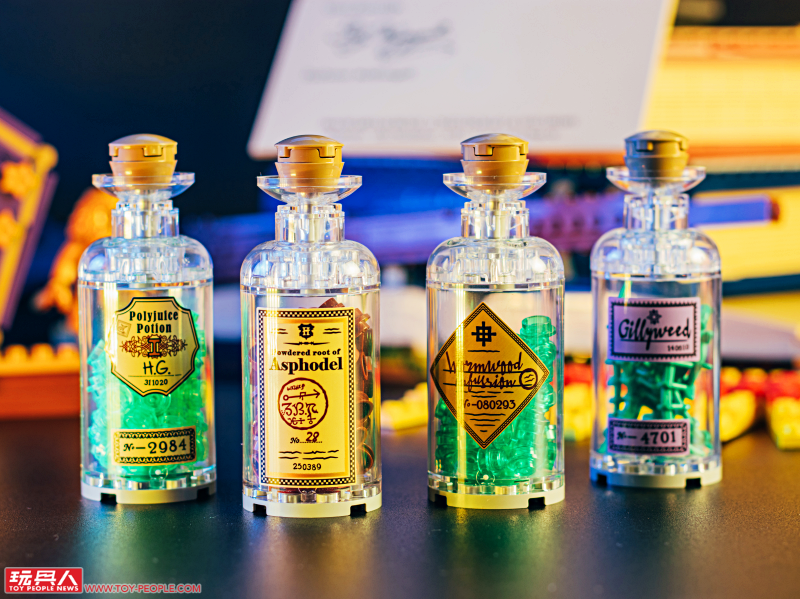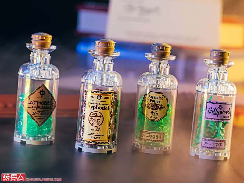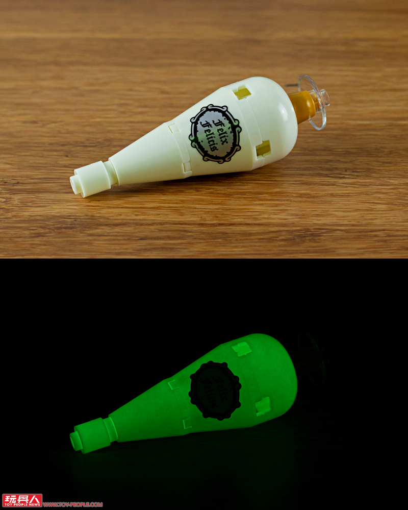 ▼ 福來福喜(Felix Felicis),可能是本次比較冷門的一個魔法道具,福來福喜又被稱為 Liquid Luck(幸運藥水),能夠為喝下的人在一定的時間內帶來好運;在《哈利波特-混血王子的背叛》中,出現在史拉轟教授的課堂中,後來他也將其送給哈利。這次的福來福喜還利用夜光效果的零件製作喔。