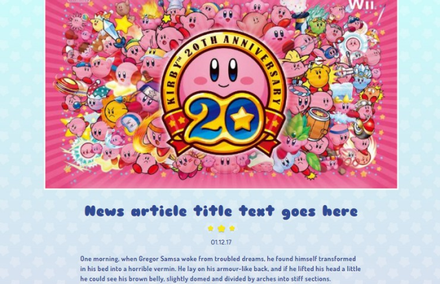 任天堂在《星之卡比》的老舊網站上增加了6個網站內容架構,而裡面的文本與卡比無關,而是選用卡夫卡《變形記》小說的節錄去做文字排版。