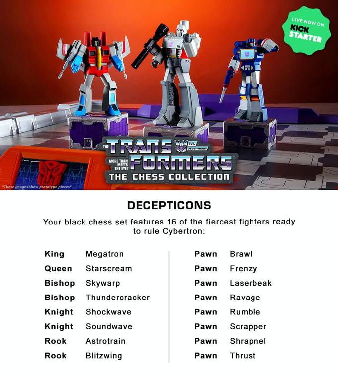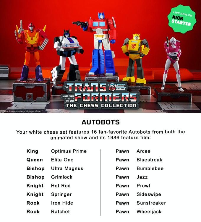 娛樂流行收藏品發行商 Hero Collector 攜手美國玩具大廠 Hasbro,於募資平台 Kickstarter 展開了一項《變形金剛》的主題企劃,那就是將博派、狂派兩方人馬永不止息的爭鬥給搬到桌面上的「變形金剛西洋棋組」(Transformers Chess)!
