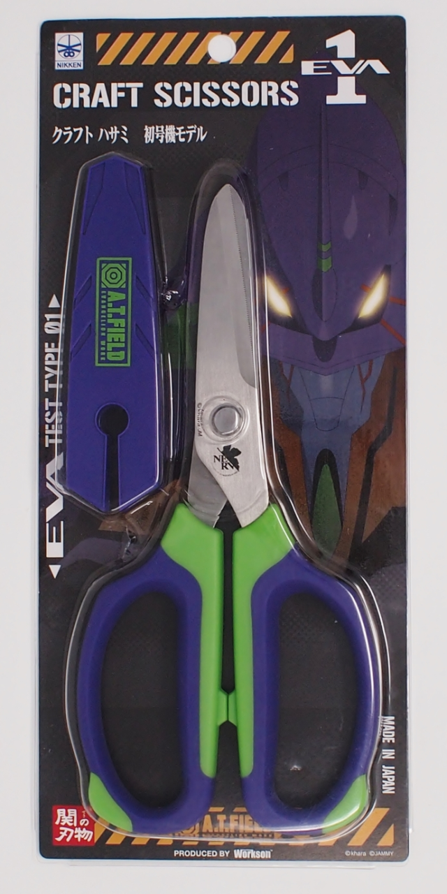 《新世紀福音戰士》官方商店「EVANGELION STORE」以的時尚工業用具主題品牌「A.T.FIELD EVANGELION WORK」( ワークブランド A.T.FIELD ) ,繼先前的 「初號機安全告示牌」 、「DC18V 充電式 1/2DR 衝擊扳手組合」 後,這次推出的文具用品「EVA 剪刀」,分為初號機與二號機兩色可供選擇。售價為 2,750 日圓,目前開放訂購。