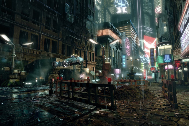 在包含;動畫《阿基拉》、《攻殼機動隊》與電影《銀翼殺手》系列、《艾莉塔:戰鬥天使》、《第五元素》與《一級玩家》等都可以看到類似的世界觀設計。