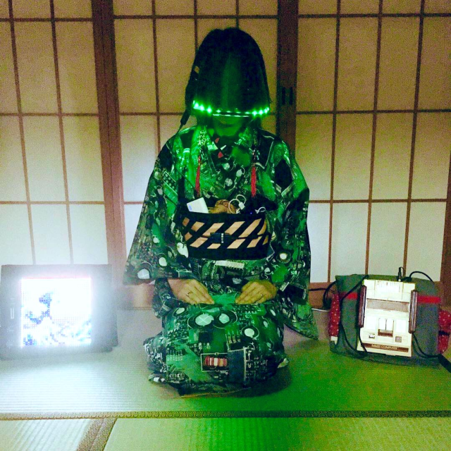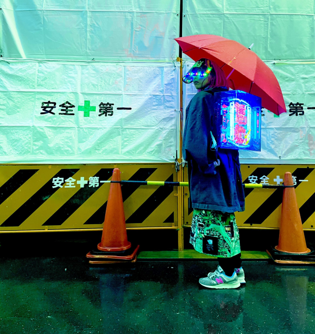 推主サイバーおかん將這樣的虛擬世界觀套用到自己的生活中,透過服裝配件的裝扮展現出 Cyberpunk 在各式各樣電影或動畫的樣貌,並拍攝照片上傳到網路上分享給網友。