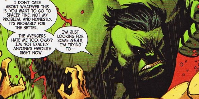在本周出版的《免費漫畫日:復仇者/浩克》(Free Comic Book Day: Avengers/Hulk)中,當浩克闖入超級反派「魔多克」(M.O.D.O.K.)的一個「超智機構」(A.I.M.)據點時,他說到他一直想去探索太空與新的世界,早在他成為伽馬科學家、怪物或超級英雄之前就已經如此。為此,浩克搶走了一個高科技頭盔和一些魔多克正在打造的科技品,並放任他被火箭燃料爆炸給波及而離去。