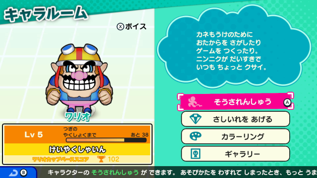 另外本作還有能與全世界玩家對戰交流的「瓦利歐盃」,每週都有不同的挑戰項目,並以最高分數或最佳時間為目標,可以看到全世界玩家與好友們的挑戰成績,透過「瓦利歐盃」來挑戰自我吧。
