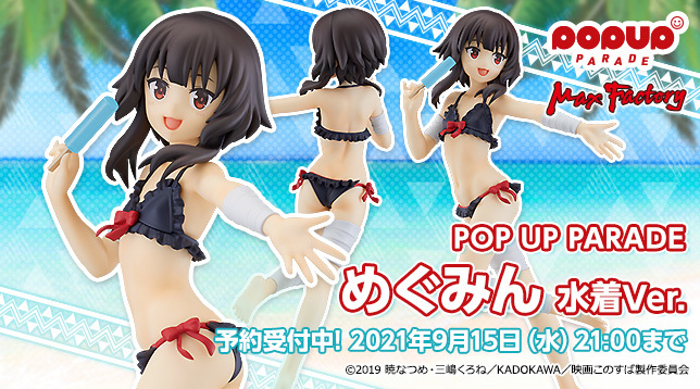 日本 GOOD SMILE COMPANY 旗下的平價塗裝完成品系列「POP UP PARADE」,繼「 阿克婭」、「惠惠」和「達克妮絲」之後,再度發表了出自《為美好的世界獻上祝福!》的最新商品「POP UP PARADE 惠惠 泳裝Ver. 」無比例 PVC 塗裝完成品,參考售價為 3,900 日圓 ,預計將於 2021 年 12 月發售。