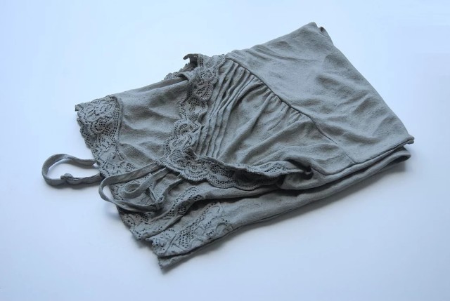 而最近在日本Twitter上也同樣有一件以假亂真的藝術品吸引了不少網友的關注,各位可以看到圖中的展示台上,正擺著一件灰色的女性內衣,但這並非一般以布料所製成的衣物,而是利用陶瓷所打造的一件陶藝品。