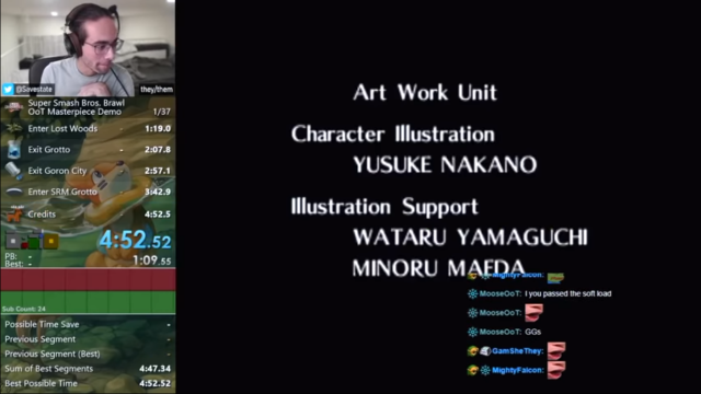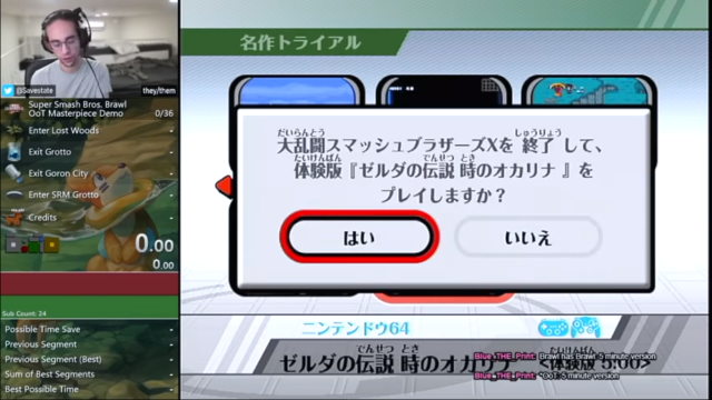 從速通紀錄而言,該版本的《薩爾達傳說:時之笛》將落於17分鐘左右才能以最快速通關,因為玩家必須經過部分等待過程而影響速度拖延,但本次Savestate玩家經過《任天堂明星大亂鬥X》中的大師模式進行日語版本《薩爾達傳說:時之笛》,並藉由成年林克存檔點的方式跳過了「工作人員名單」畫面。