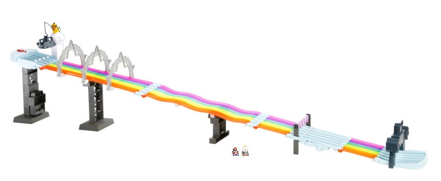 商品名就叫做「風火輪小汽車 瑪利歐賽車 彩虹賽道組」(ホットウィール マリオカート レインボーロード),顧名思義,它的賣點就是那個大家都罵過髒話、都摔出去過的彩虹賽道。