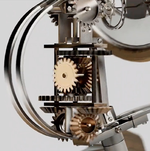 ▼該裝置以齒輪組來運作