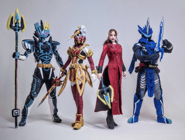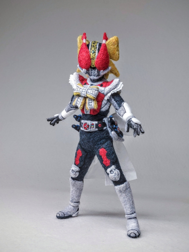 推主あわわのおんつぁ(@onza_bubbles)擅長用羊毛氈創作各種有趣的作品,多半為人偶,他首先用絨線鐵絲做出人物姿勢當作支架,最後才用各種顏色的羊毛氈做出想要的人物,而他做出的作品非常多,諸如假面騎士、動漫或遊戲角色、寶可夢,甚至還有鋼普拉,簡直無法想像其技藝到底是苦練多久才有這番成就的。