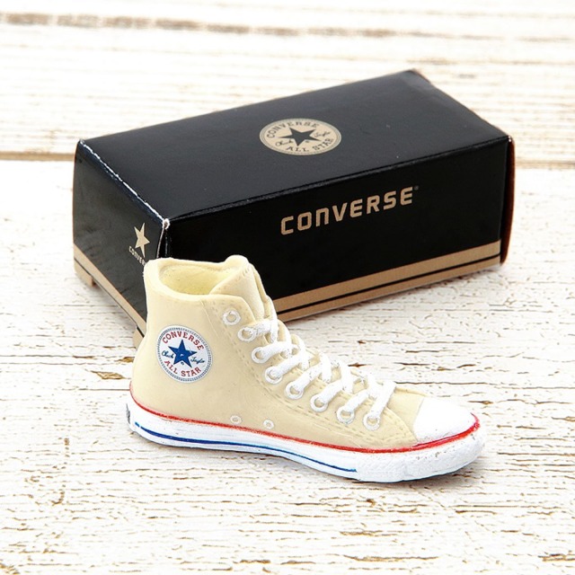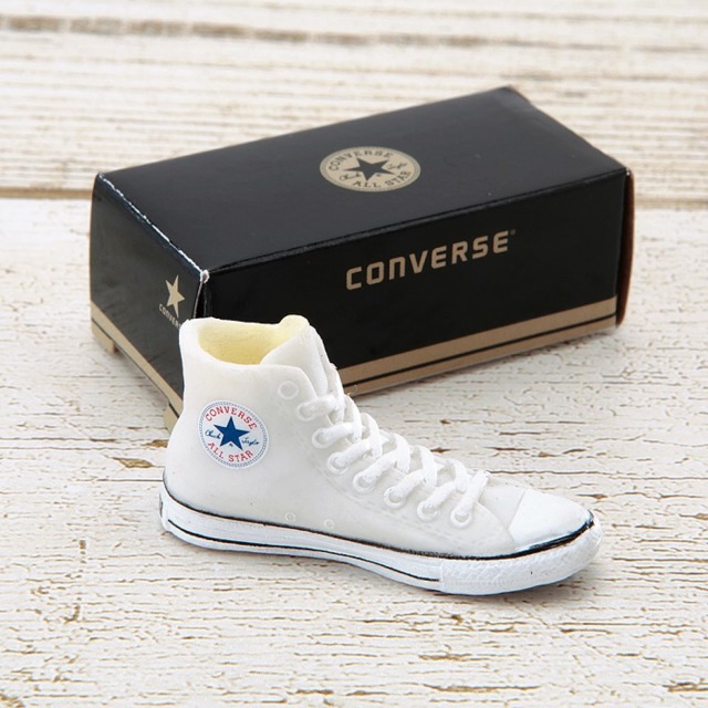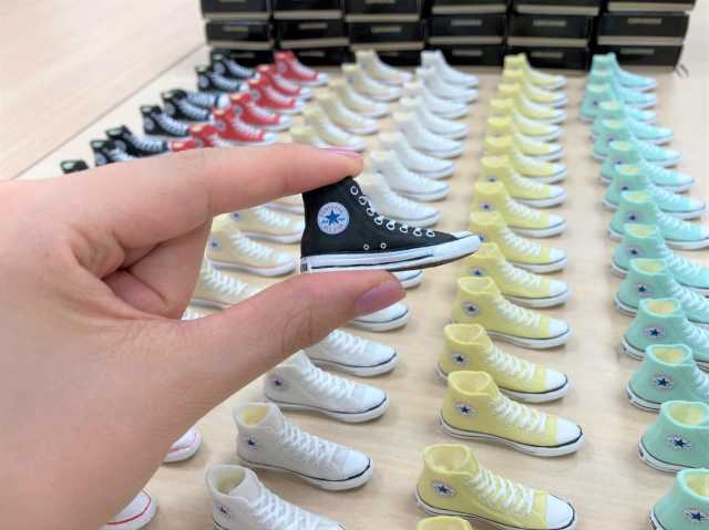 有如被哆啦A夢的縮小燈照射一般,熟悉的CONVERSE帆布鞋不僅成為能夠放在手心上的嬌小尺寸,可以觀察到這商品的細膩程度,就連鞋帶、鞋帶孔、標籤,甚至連鞋底紋路…等細節都不放過,如此精緻的成品即便是放在收藏櫃裡純欣賞,都很具有價值性,畢竟相信各位也捨不得真的拿來擦拭字跡髒污吧。