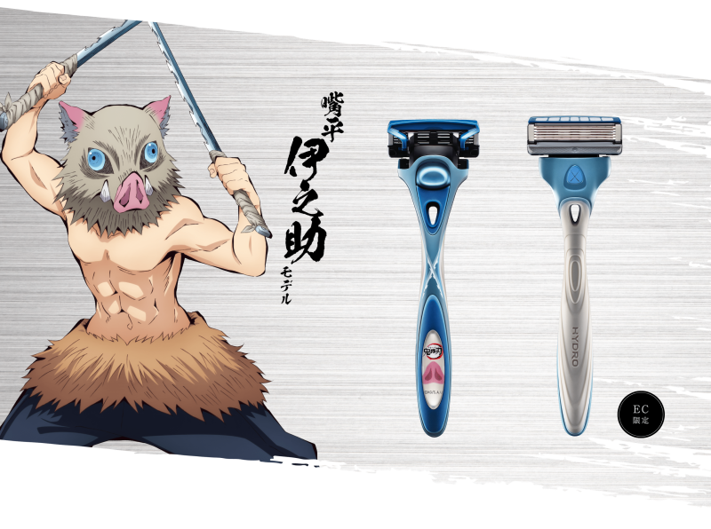 與電影《鬼滅之刃劇場版無限列車篇》合作,共四款刮鬍刀,以「竈門炭治郎」、「我妻善逸」、「煉獄杏壽郎」以及EC限定的「嘴平伊之助」作為刮鬍刀的設計靈感,分別推出帥氣且具有角色特色的造型配色。除了配色以外,在刮鬍刀刀身也各別印製有鬼殺隊隊服的「滅」字,以及鬼滅之刃的作品LOGO等,包含羽織花紋和招式的閃電、豬鼻子等元素,讓你刮毛也能如斬鬼一般煞氣!