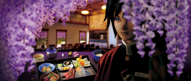 餐廳將會設置在環球影城的 SAIDO 餐廳中,餐廳將會以劇中的紫藤花為主題設計場景,展現出劇情中的獨有世界觀,將會有 1 比 1 的富岡義勇&胡蝶忍的真人場景提供粉絲朝聖拍照。