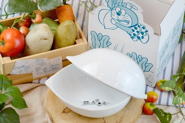 《哆啦A夢:大雄的日本誕生》「農產餐點」餐碗將從2021年8月30日至2021年9月30日內於川崎市藤子.F.不二雄博物館官網預購,售價為9300日圓(含稅)。