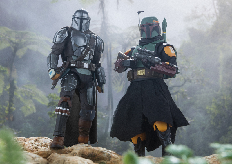 本次的「波巴·費特(曼達洛人)」是根據《曼達洛人》第十四章:悲劇(The Tragedy)登場之後、將原本看起來嚴重毀損的裝甲修復過後的版本,高度再現了招牌頭盔、黃色肩甲、紅褐色手前臂護甲、裝備腰帶......等造型細節,裙擺部分則是以布料材質製作,在胸甲、噴射背包上也能看到殘留下來的戰損痕跡,頭盔的瞄準鏡設有可動機構,能如實還原劇中費特鎖定敵人的場面!