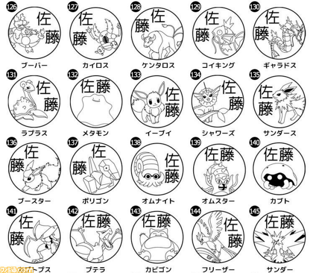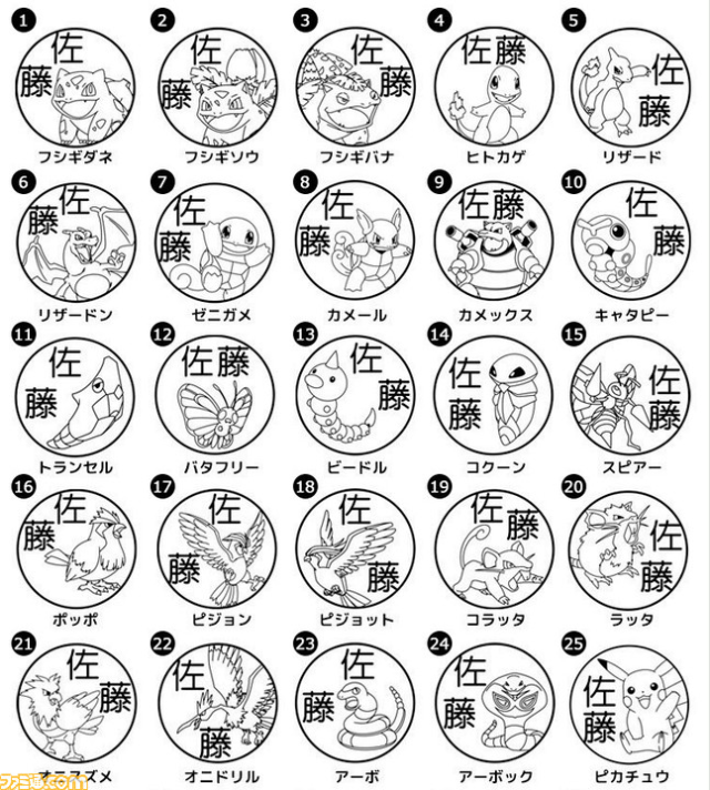 「Pokémon PON姓名印章」可以選的印章類型有 151 種,只要是關都地區出現的寶可夢通通都能任君挑選,而預設圖樣都在以下圖片可以看見,各位可以找找看自己喜歡的寶可夢樣式長什麼樣喔。