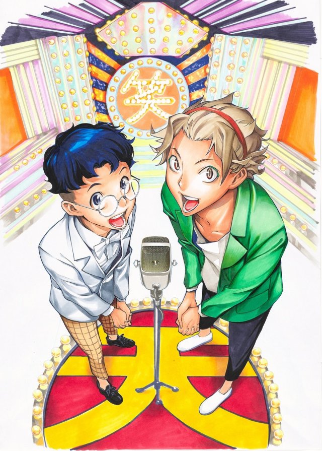 而這次與淺倉秋成原作搭檔的新連載《ショーハショーテン!》故事講述高中生明信片職人的四十万畦道被學校第一的怪人東方太陽邀請至文化祭舞台就開始了以搞笑為頂點目標的高中生本格搞笑青春喜劇故事。