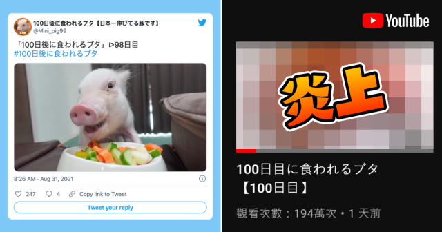 而就在2021年9月1日這天,正是來到了第100天的日子,也就是決定這隻小豬生或是死的命運之日,而在這一天該名網紅也依照慣例,在YouTube頻道上上傳了紀錄影片,但頗為駭人的是,影片封面毫不猶豫地放上了已經熟透的烤乳豬圖片,讓人下意識不禁想起「這隻小豬莫非已經被煮來吃了嗎?」的猜測。