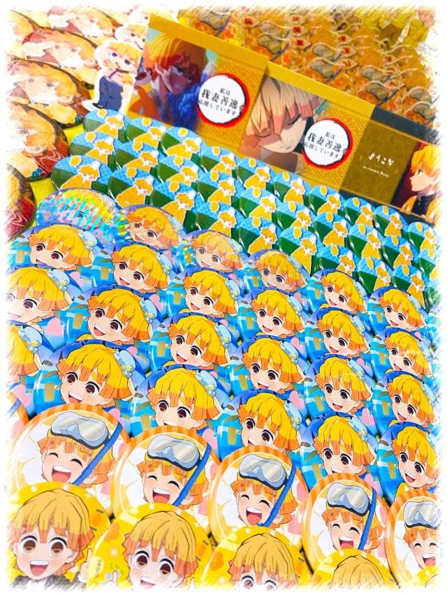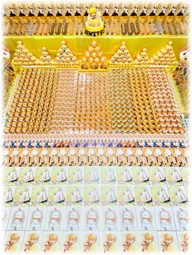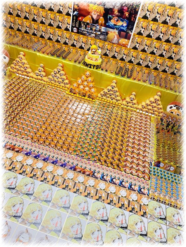 而今日9月3日為熱門動漫《鬼滅之刃》中的人氣角色「我妻善逸」的生日,在這天除了能夠在Twitter上看到粉絲們的慶祝外,其中更有一位名叫鮭大根(@Skdk0215)的推主,曬出了可說是一片「黃海」的善逸祭壇,除了滿堆的娃娃外,還有難以數計胸章、色紙畫、壓克力立牌等,當然就連蛋糕的部分也完全以黃色來打造,滿滿的「黃色饗宴」,實在是很難不讓人引起注意啊!