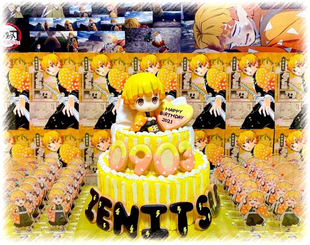 ▼就連蛋糕上也有一尊相當可愛的善逸,以及極具標誌性的黃色奶油與裝飾XD
