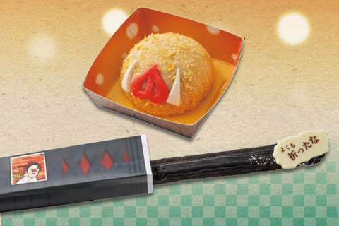 ▼ 伊之助造型炸饅頭&被折斷的日輪刀巧克力條