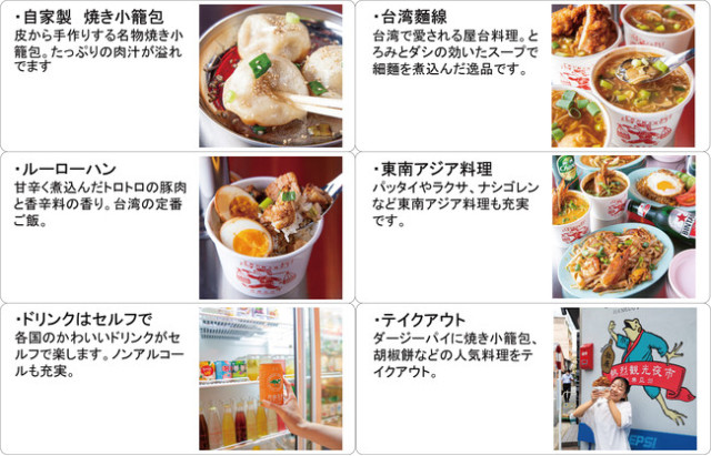 自家製小籠包、台灣麵線、滷肉飯、叻沙(?!)等東南亞料理,還有可以外帶小籠包或胡椒餅等等食物的外帶站,飲料也裝在台式的透明大冰箱裡,讓消費者自己拿取,可以看得出業者真的相當努力在營造「台灣感」。