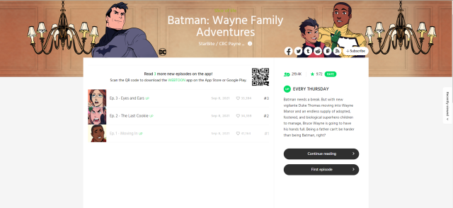 在上回DC Comics宣布將與著名條漫平台WEBTOON Entertainment Inc合作後,DC官方也首度釋出了將在Line Webtoon連載的第一部網路漫畫《蝙蝠俠:韋恩家族歷險記》(暫譯:Batman: Wayne Family Adventures),並且也已經在WEBTOON平台上搶先公開了三話內容,只不過目前尚未同步推出中文翻譯。