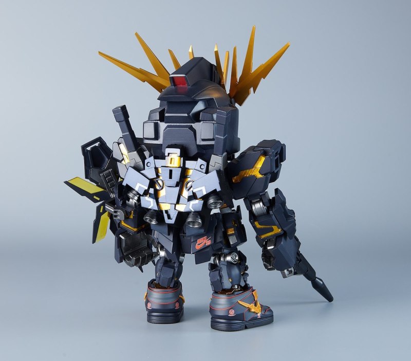 這次兩款「QMSV RX-0 獨角獸鋼彈[毀滅模式] Ver.NIKE SB」、「QMSV RX-0 獨角獸鋼彈二號機 報喪女妖[毀滅模式] Ver.NIKE SB」聯名商品,尺寸約高 20 公分,採用由日本玩具設計師 TOUMA 以 Q 版風格詮釋的 QMSV 系列呈現,在機甲配色的基礎上,機體更追加有 NIKE SB 標誌等運動潮流元素;腳上更是還原了今年發售的 Nike SB X Unicorn Gundam Dunk High 聯名款球鞋,細膩打造鞋身滿滿細節與精緻的金屬塗裝等,大大凸顯了這次大膽跨界聯名的特色,收藏價值飆高高!!!