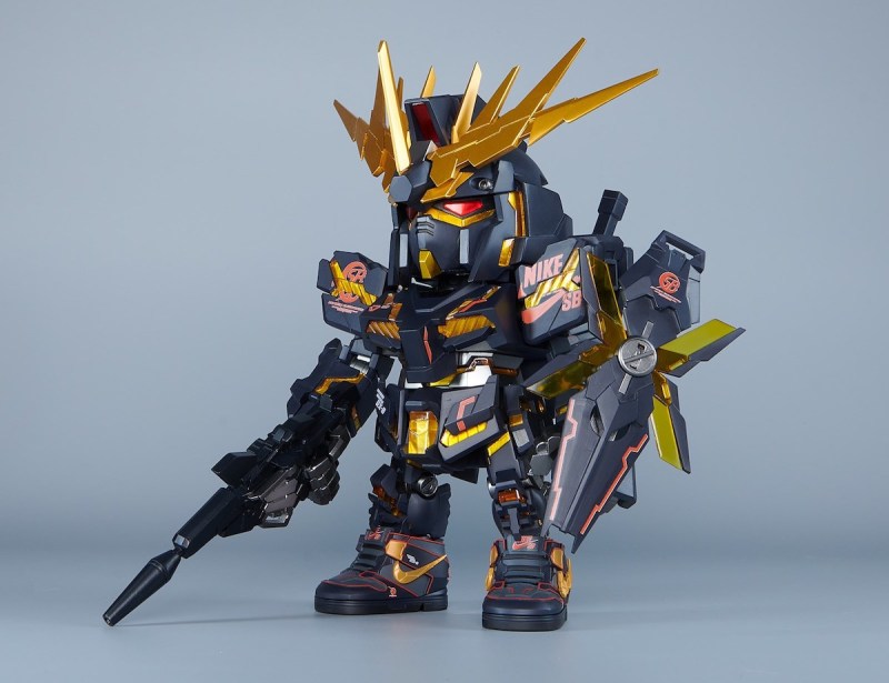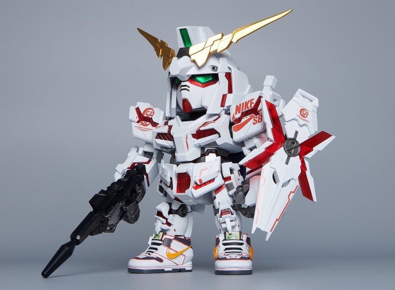 為了慶祝於 2007 年推出的《機動戰士鋼彈UC》小説 15 週年, NIKE 旗下滑板品牌 Nike SB 在推出了震撼動漫與潮流圈的 Nike SB Dunk High 獨角獸鋼彈特別版配色後,這次再度釋出了以獨角獸鋼彈為主體的「QMSV RX-0 獨角獸鋼彈[毀滅模式] Ver.NIKE SB」、「QMSV RX-0 獨角獸鋼彈二號機 報喪女妖[毀滅模式] Ver.NIKE SB」兩款限定聯名商品,讓獨角獸鋼彈也穿上超潮鞋款!