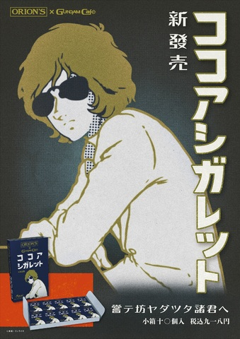 這次與 ORION'S 合作,將品牌在昭和26年(1951年) 發售的經典香菸糖製作全新包裝,以夏亞帶著墨鏡的圖樣放置在包裝盒上,