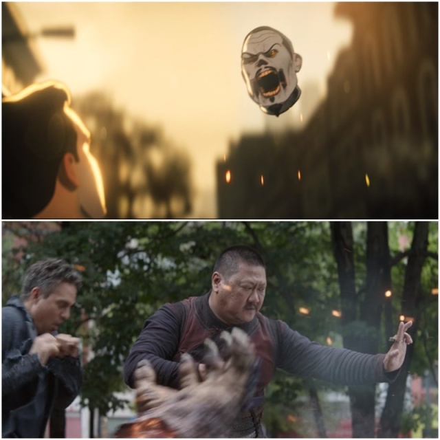 僵屍老王欲透過傳送門攻擊班納,這時浮空斗篷讓傳送門關閉,將老王斬首。而在《無限之戰》原片中,老王則是用同樣的方式斬斷黑矮星的手。